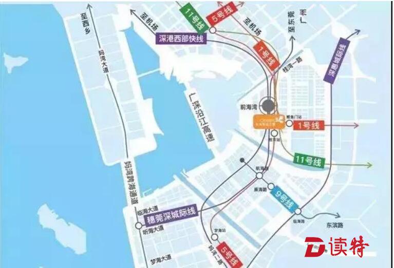 樞紐部分由地下5條軌道線路及口岸和公交、出租、旅游大巴等交通接駁場站構成。總用地面積約20公頃。前海綜合交通樞紐由政府投資,深圳地鐵集團建設。項目分為近期和遠期兩部分實施。預計2020年完成這項交通巨制的地下土建。目前地鐵1、5、11號線前海灣站已經開通,穗莞深城際線預計年內將開工,港深西部快線正在規(guī)劃中。