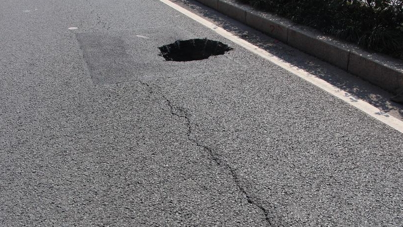市民廣場前一輔路驚現(xiàn)直徑一米坑 有 ...