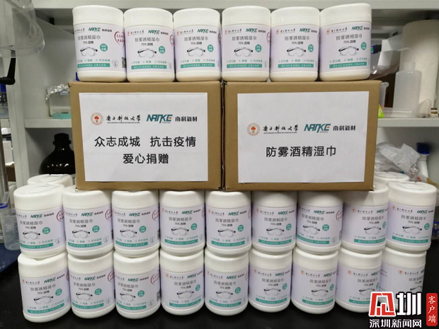南科大首批捐贈(zèng)的防霧濕巾。