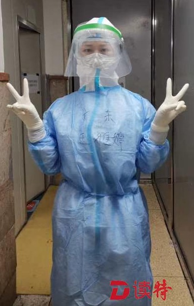 在忙碌之余,3位隊(duì)員也收獲了一份感動(dòng)。原來,因?yàn)樗齻兌荚诜雷o(hù)服外面寫上了“廣東”和自己的名字,所以一進(jìn)入隔離病房后,就有患者向她們道謝:謝謝廣東的支援,你們辛苦了!“那一瞬間真的感覺很暖心,很感動(dòng)?!?/p>