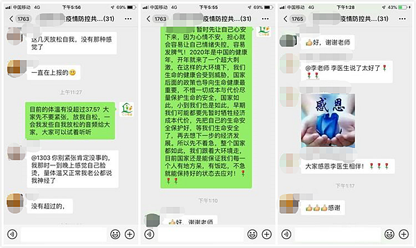 通過微信群等線上形式,做好重點人群的心理服務(wù)工作。一是進(jìn)入居家隔離群,向群眾提供線上即時服務(wù)。從心理咨詢師進(jìn)入到居家隔離群中的反饋來看,居家隔離的人群有因隔離時間太久,情緒煩躁異常;也有擔(dān)心呆在家里無收入,房租及公司虧錢等而出現(xiàn)身心不適;有因孩子出現(xiàn)發(fā)燒癥狀需就醫(yī)產(chǎn)生緊張不安的;也有因鄰居發(fā)出躁聲影響睡眠而煩躁不安的。面對這些情緒,咨詢師及時給予理解、共情、支持和接納,使相關(guān)心理問題得到及時緩解。二是將心理咨詢熱線通過各工作群轉(zhuǎn)達(dá)最需要服務(wù)人群中。及時把服務(wù)熱線擴(kuò)散到社區(qū)抗疫工作群、網(wǎng)格員群、居家隔離群等潛在服務(wù)人群中,隨時為群眾提供心理支持服務(wù)。三是創(chuàng)立熱線小程序,方便群眾隨時聯(lián)系咨詢。