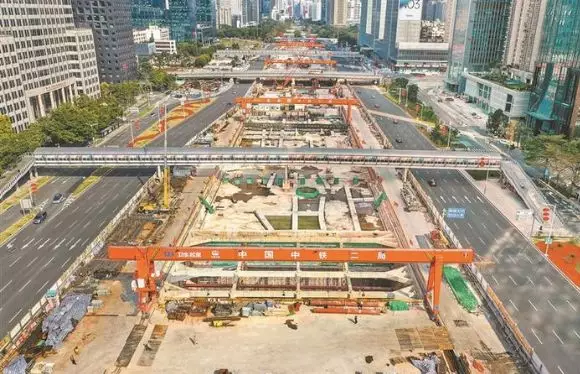 崗廈北綜合交通樞紐建設(shè)工地全景。圖自:深圳特區(qū)報