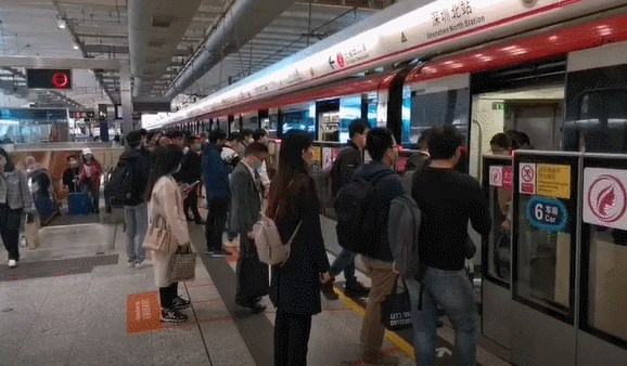 大家隔著安全距離,有序排隊(duì)進(jìn)站