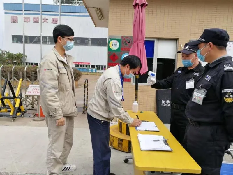 位于福城街道的大唐寶昌燃?xì)獍l(fā)電公司有序復(fù)工復(fù)產(chǎn),員工進(jìn)出園區(qū)測(cè)溫登記。