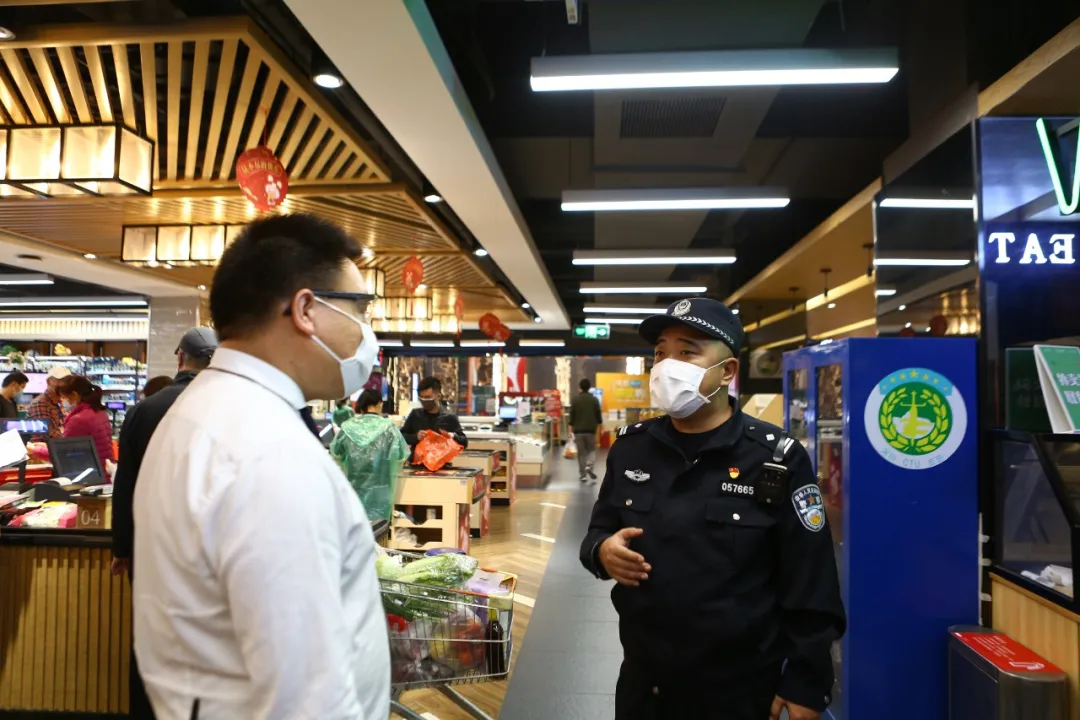 (民警對復(fù)工復(fù)產(chǎn)商業(yè)區(qū)進(jìn)行防疫檢查)
