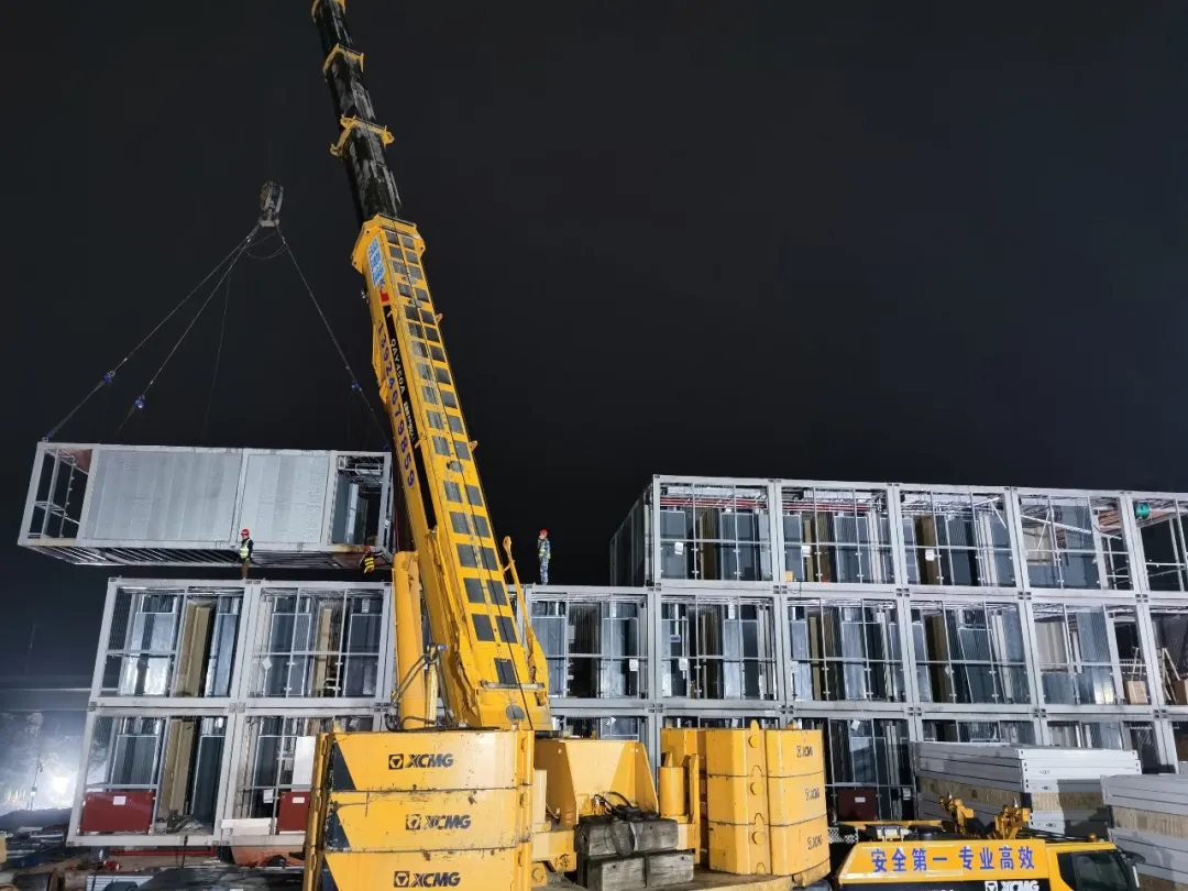 24小時完成所有模塊吊裝 醫(yī)護公寓封頂