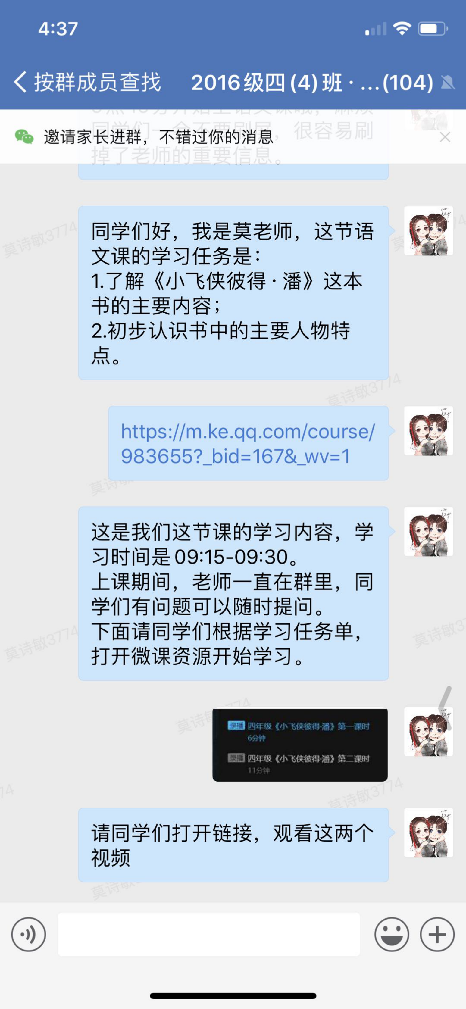 上課前,莫詩敏會在班級群里發(fā)學(xué)習(xí)任務(wù)單。