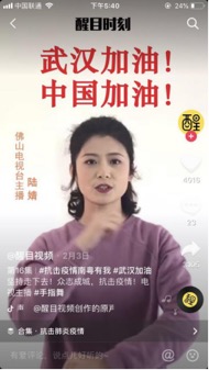 手語(yǔ)是聽(tīng)障人士與健聽(tīng)人之間最好的溝通橋梁。佛山電視臺(tái)主播陸婧,在抖音上以手指舞為中國(guó)加油,為武漢吶喊。她用手指舞演示的“一群人,一條路,堅(jiān)持一直走下去,在一起不容易,相守更加了不起”,網(wǎng)友紛紛表示淚目。早春二月,全國(guó)人民擰在一起的力量,著實(shí)令人動(dòng)容。