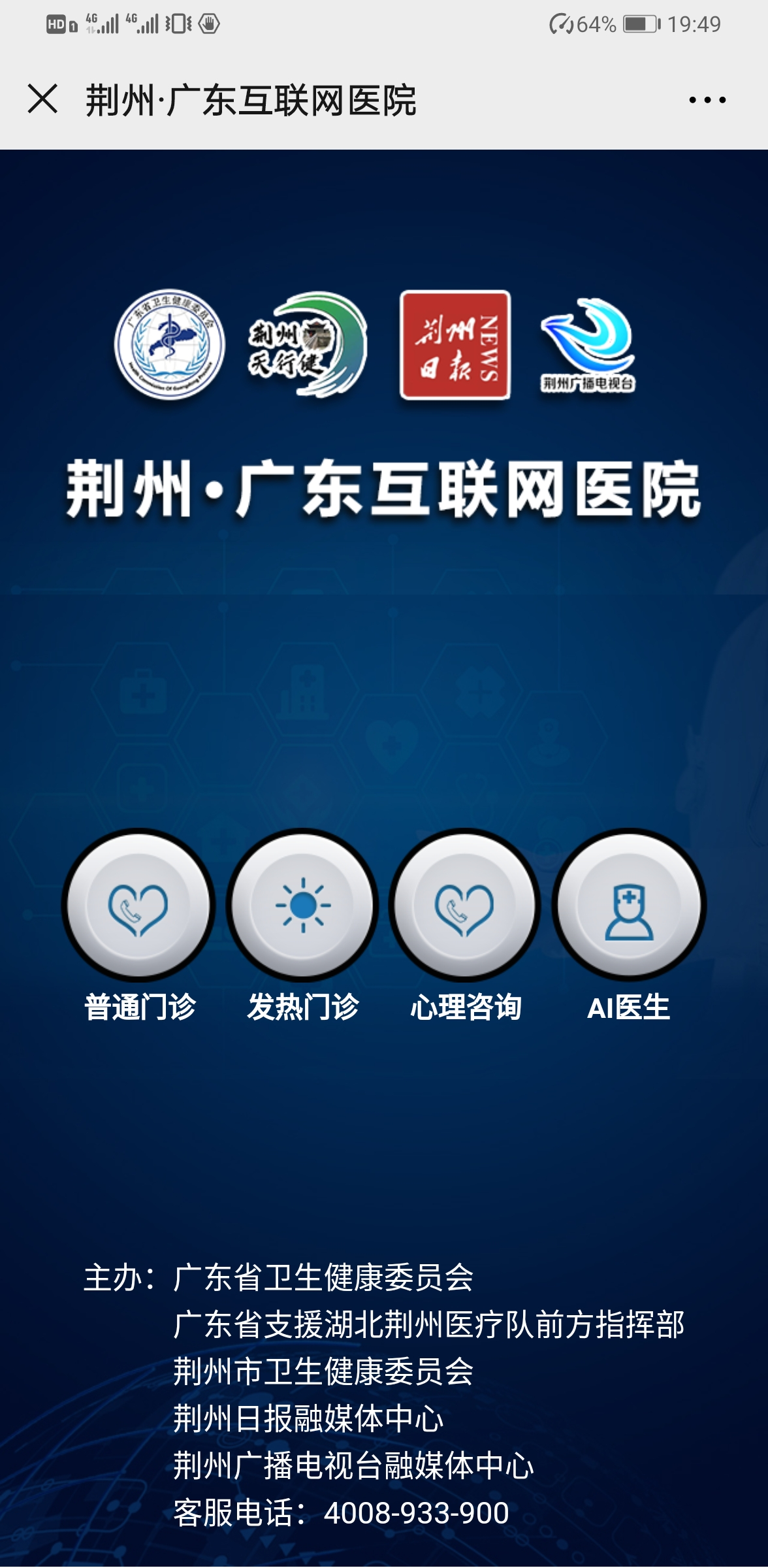 這家互聯(lián)網(wǎng)醫(yī)院是由廣東省衛(wèi)生健康委和廣東支援湖北荊州醫(yī)療隊前方指揮部聯(lián)合,在充分研判荊州疫情防控形勢的基礎(chǔ)上組建的網(wǎng)上醫(yī)療隊,實現(xiàn)荊州市民足不出戶,即可享受后方優(yōu)質(zhì)的線上服務資源,為前方“主戰(zhàn)場”減負。