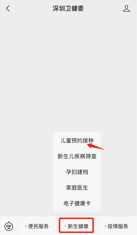 點(diǎn)擊公眾號(hào)菜單欄“新生健康”-“兒童預(yù)約接種”