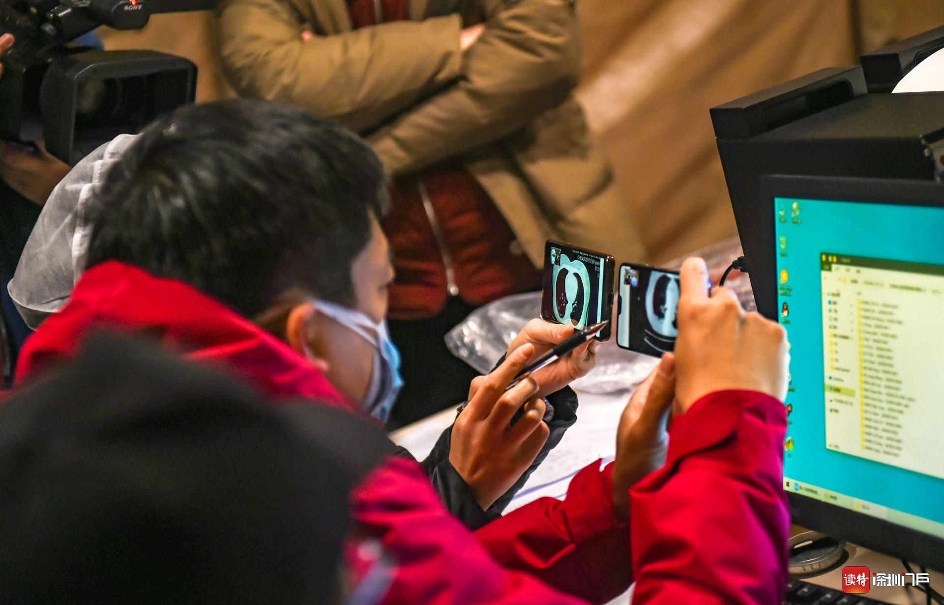 方艙外的帳篷辦公區(qū)內,醫(yī)生連線艙內為患者會診。