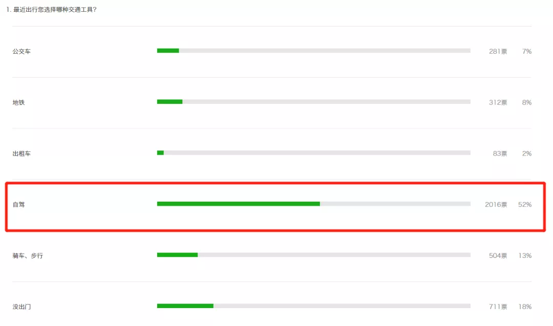 據(jù)不完全統(tǒng)計,現(xiàn)如今52%的市民出行選擇的交通工具為自駕,選擇公交、地鐵以及騎車、步行的人數(shù)加起來僅占28%。