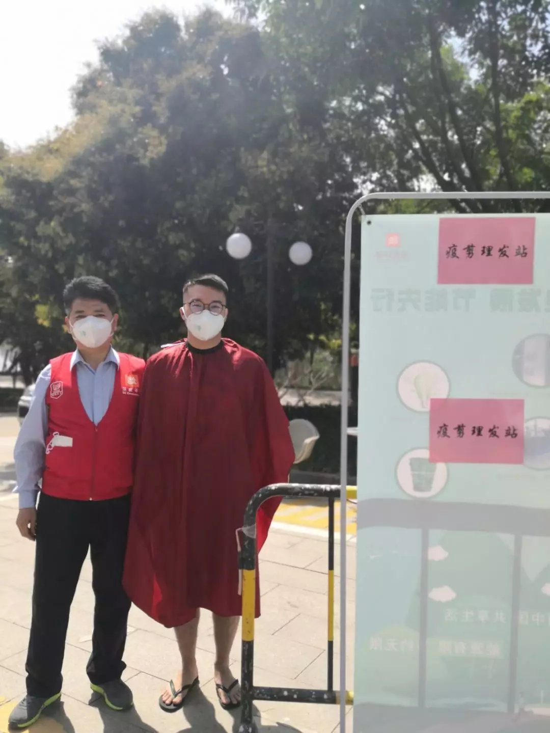 公司本部,1303會(huì)議室,臨時(shí)理發(fā)室“生意”也火爆極了。公司工會(huì)邀請(qǐng)了兩名專業(yè)的Tony老師,為近90名員工提供免費(fèi)的理發(fā)服務(wù)。為減少人員聚集,理發(fā)采取提前線上預(yù)約,分時(shí)段進(jìn)行,確保安全的同時(shí),盡可能讓有需要的同事都能理上發(fā)。鋪上一次性地毯,坐上椅子,圍上一次性“斗篷”,Tony老師一頓熟練的剪發(fā)操作后,再用吹風(fēng)機(jī)整好造型,就完成了理發(fā)的全過(guò)程。臨時(shí)理發(fā)師的搭建,有效解決了員工生活上的困難,幫助他們以良好的精神面貌投入工作來(lái)。