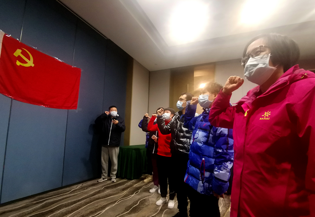 見圳客戶端·深圳新聞網(wǎng)2020年3月9日訊 3月9日晚7時(shí)30分,廣東省支援荊州醫(yī)療隊(duì)組織新黨員入黨宣誓活動(dòng)。深圳邊檢總站醫(yī)療隊(duì)和北大深圳醫(yī)院醫(yī)療隊(duì)分別在荊州市第一人民醫(yī)院分會(huì)場(chǎng)和監(jiān)利縣廣東醫(yī)療隊(duì)駐地酒店分會(huì)場(chǎng)組織黨員參加了宣誓活動(dòng)。經(jīng)廣東省支援荊州醫(yī)療隊(duì)臨時(shí)黨委批準(zhǔn),來(lái)自深圳邊檢總站醫(yī)院醫(yī)療隊(duì)的護(hù)士許梅與來(lái)自北大深圳醫(yī)院的護(hù)士曹慧敏、趙晨曦作為新黨員火線入黨。