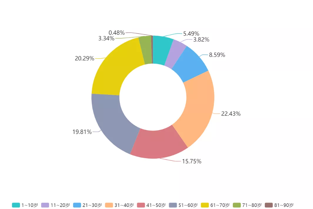 ▲新冠肺炎患者以中老年人為主,年齡在50歲以上的患者占到了總數(shù)的43.92%。但也應(yīng)注意到,10歲以下的兒童確診人數(shù)達23人,青少年同樣存在感染風(fēng)險。