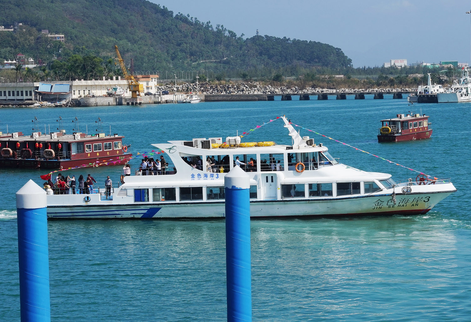 ??吭邴}田金色海岸碼頭處運營游船。韋建誠攝