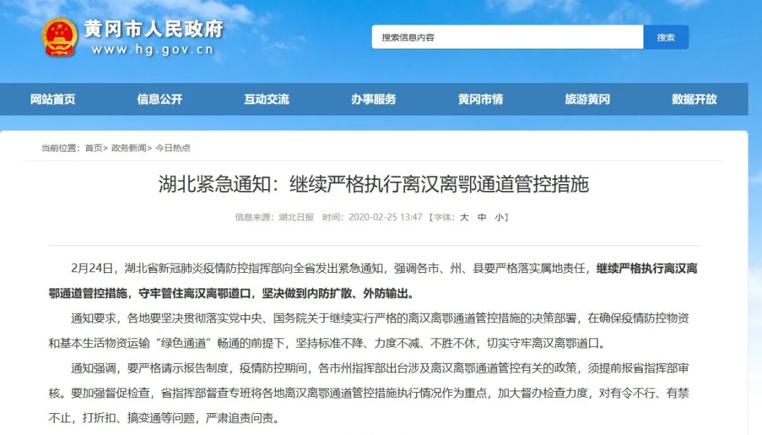 根據(jù)湖北的緊急通知,繼續(xù)嚴格執(zhí)行離武漢離湖北通道管控措施。