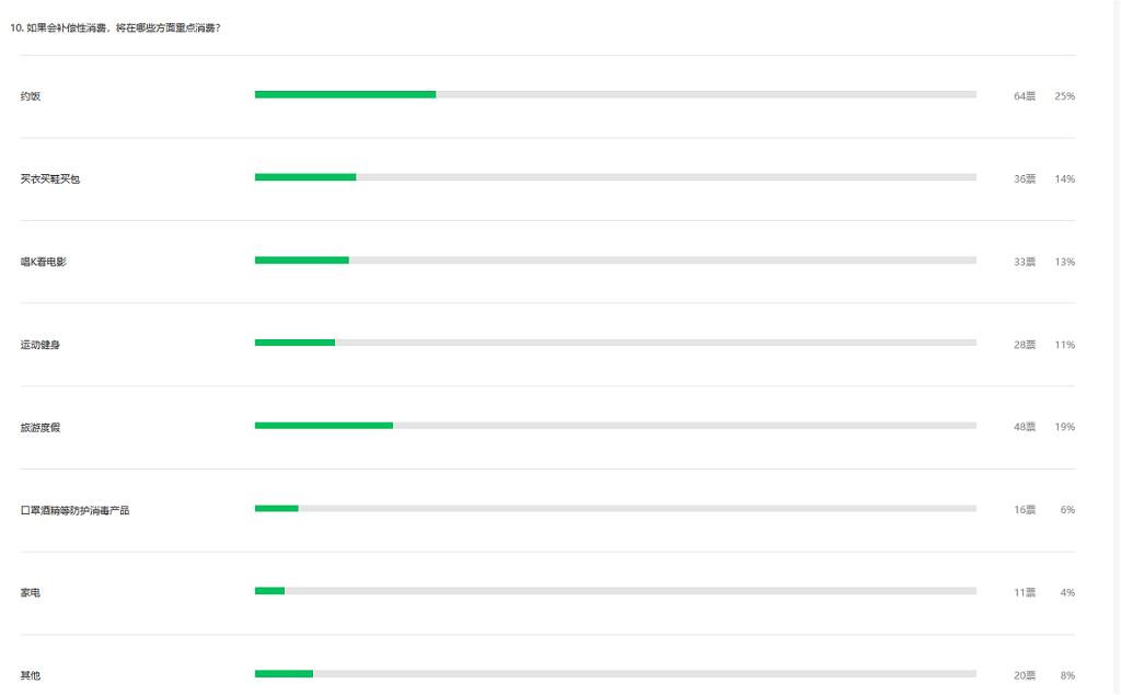 整體看,疫情對深圳市民總體消費意愿有影響。調(diào)查顯示,近四成受訪者表示疫情結束后會有補償性消費,約飯、旅游度假、買衣買鞋買包、唱K看電影以及運動健身成為疫情過后補償性消費的五大主要領域。