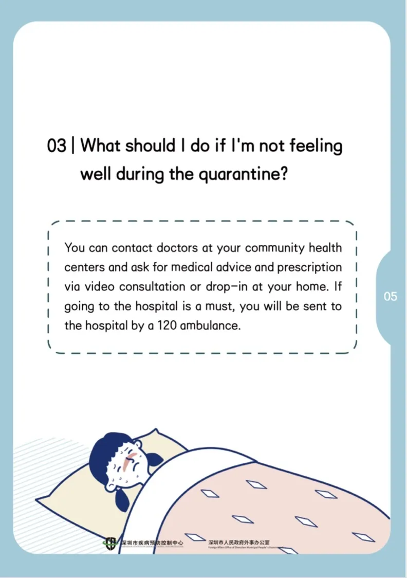應(yīng)在早、晚各測量一次體溫,并于每天18∶00時(shí)前報(bào)告給社康醫(yī)生。如果出現(xiàn)有發(fā)熱、咳嗽、氣促等癥狀,應(yīng)立即向社康醫(yī)生報(bào)告,社康醫(yī)生會(huì)上門診斷。