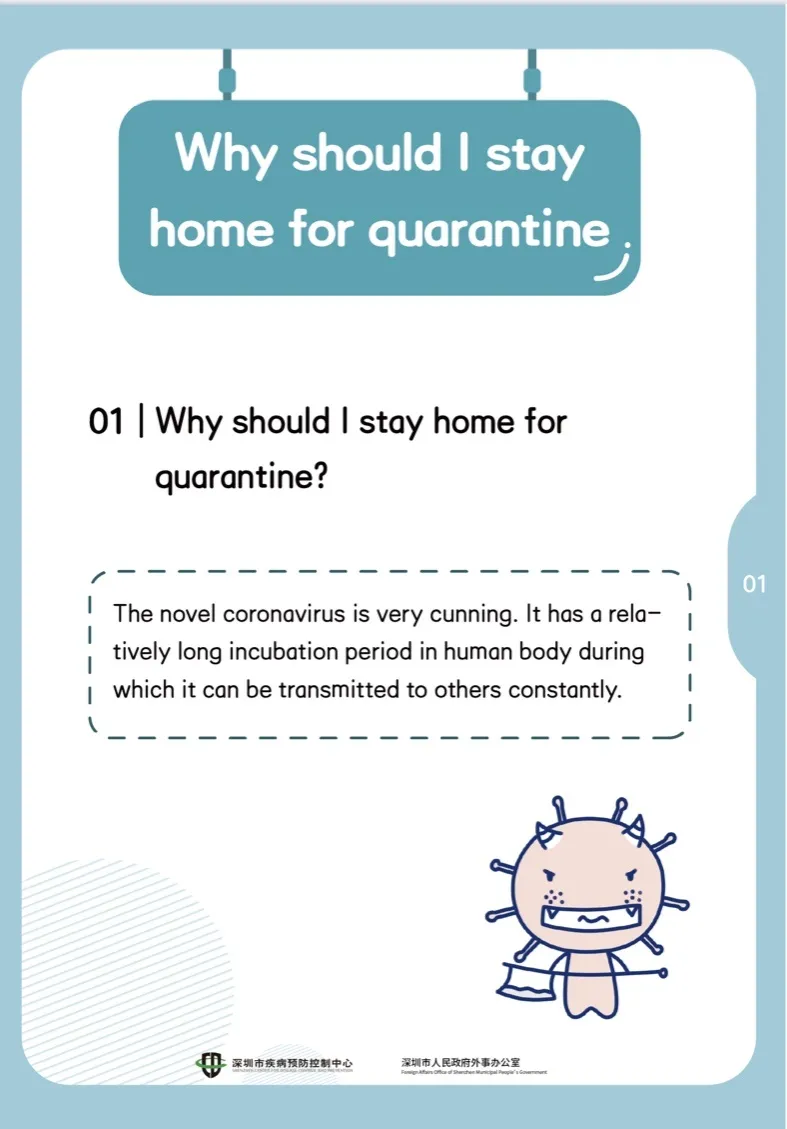 因此,為了您和家人健康,從疫情高發(fā)重點(diǎn)地區(qū)來深返深后,應(yīng)當(dāng)進(jìn)行14天居家隔離,以確認(rèn)沒有感染病毒。在這非常時(shí)期,做好居家隔離既是對您自己和家人最好的保護(hù),也是為疫情早日結(jié)束做貢獻(xiàn)。