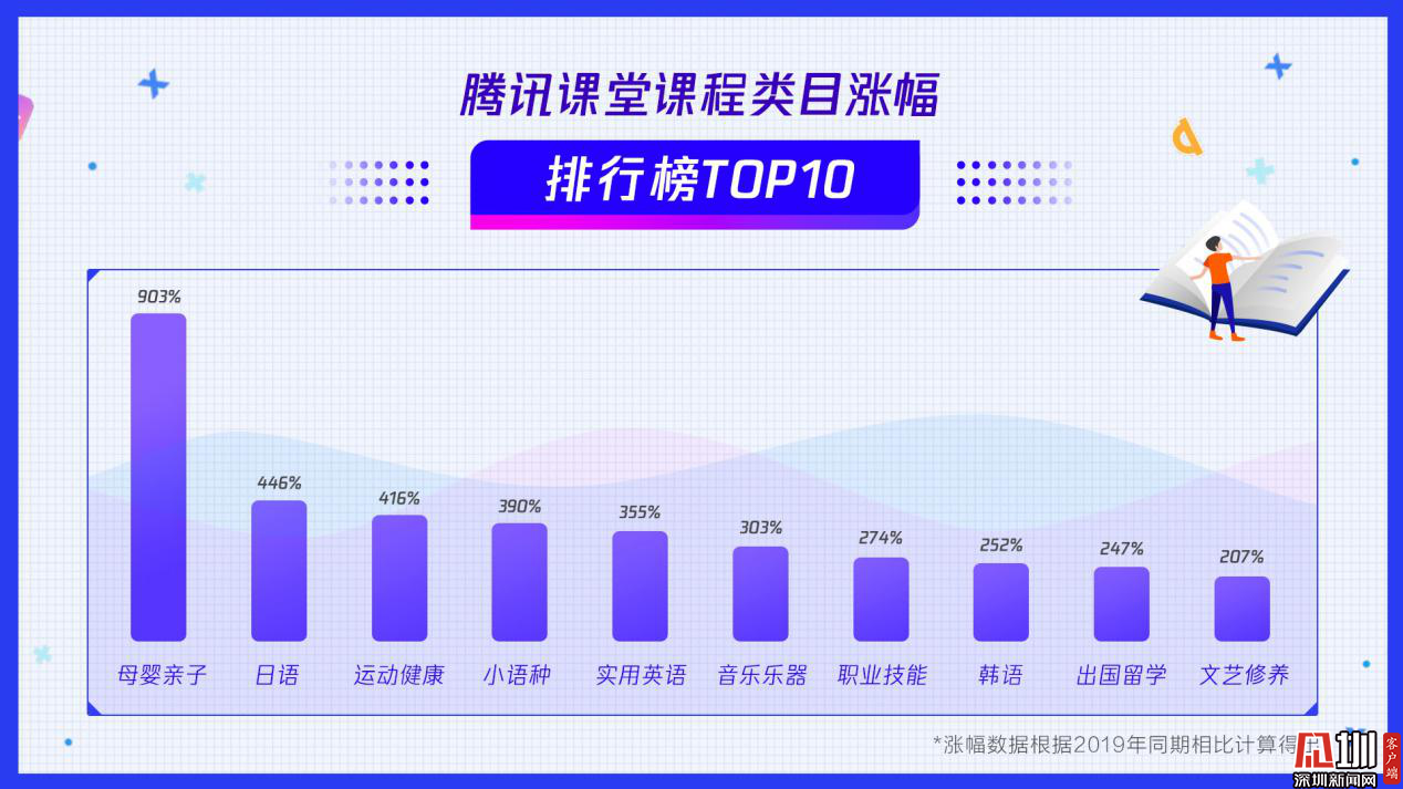 根據(jù)近期數(shù)據(jù)顯示,母嬰親子、日語、運動健康等課程廣受用戶追捧,學習人數(shù)相比19年同期漲幅超過400%,成騰訊課堂增速最快類目,顯示出巨大的發(fā)展?jié)摿?,或成為未來在線職業(yè)教育新的增長點。