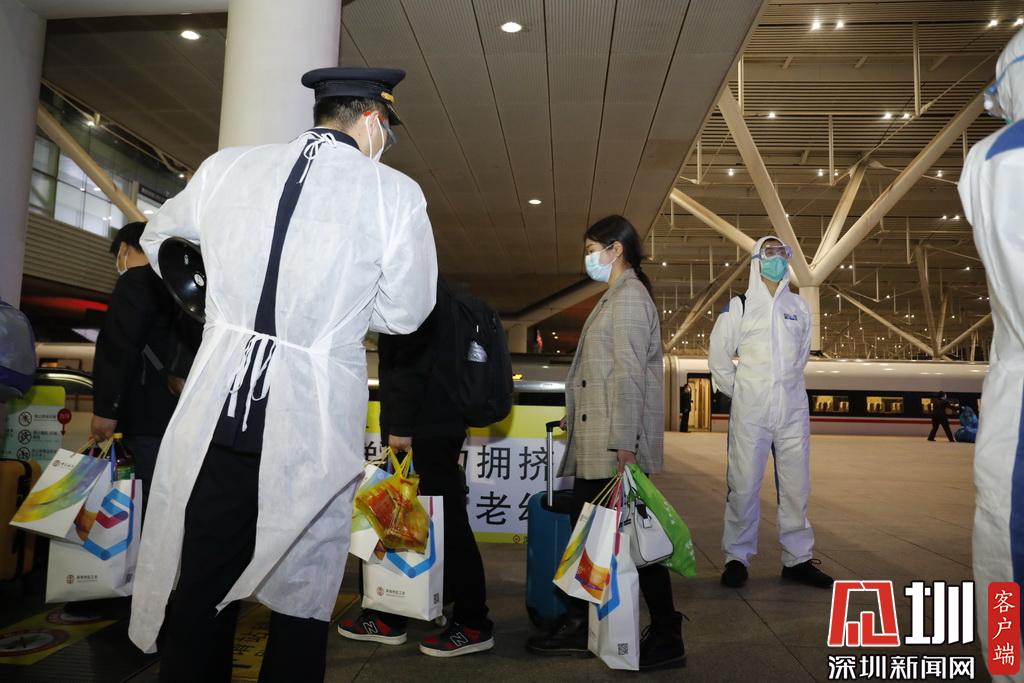 深圳北站客運車間黨總支書記龔建力告訴記者,為了確保湖北返深專列安全停靠站臺,深圳北站提前加強了清潔工作,并增派相關工作人員,確保返深湖北籍乘客有序安全出站。