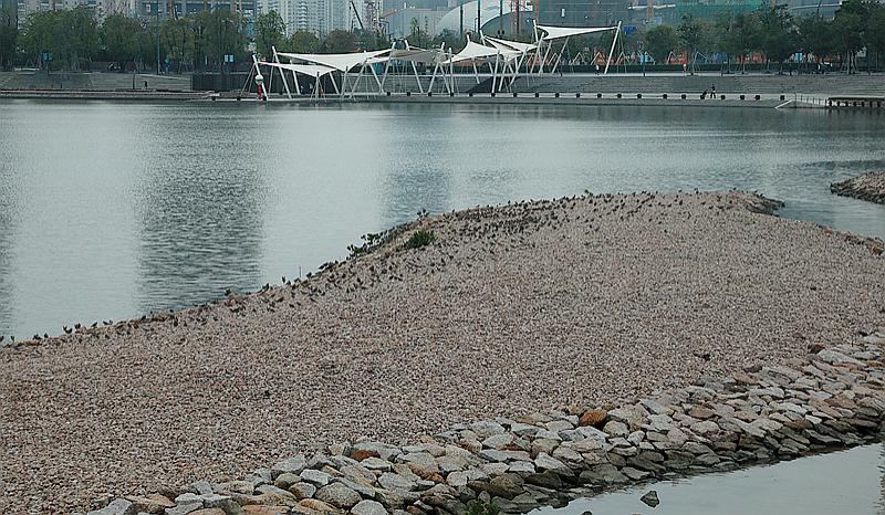 記者在采訪中了解到,2017年初,深圳觀鳥(niǎo)人士發(fā)現(xiàn)人才公園建設(shè)接近尾聲,人工島嶼種植了密集的植物。深圳市觀鳥(niǎo)協(xié)會(huì)隨即向人才公園建設(shè)主管部門(mén)提出《人才公園鳥(niǎo)類(lèi)棲息地改善建議》。相關(guān)政府部門(mén)在征詢(xún)了廣東內(nèi)伶仃福田國(guó)家級(jí)自然保護(hù)區(qū)管理局、市野生動(dòng)植物保護(hù)管理處、南山區(qū)城管局和深圳市觀鳥(niǎo)協(xié)會(huì)的意見(jiàn)和建議后,就協(xié)調(diào)處理人才公園水鳥(niǎo)棲息地等問(wèn)題達(dá)成了一致意見(jiàn),決定在適當(dāng)位置增加浮灘,增加水鳥(niǎo)停留棲息的空間。整改后的人工碎石灘,很快便吸引了大量的鸻鷸類(lèi)候鳥(niǎo)前來(lái)停棲。"這個(gè)人工石灘的距離適中,既方便人類(lèi)觀察,又不至于讓鳥(niǎo)兒感覺(jué)受到威脅,這么多年來(lái),人與候鳥(niǎo)之間一直相安無(wú)事,鳥(niǎo)兒也已經(jīng)習(xí)慣了這里的環(huán)境,所以它們才能在人類(lèi)的眼皮底下安心地打盹兒。""PT"向記者介紹說(shuō)。