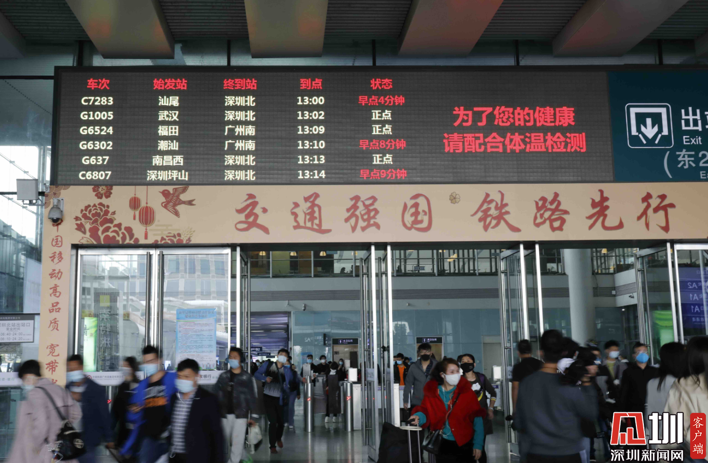 4月8日中午13點02分,G1005次高鐵到達深圳北站14站臺。
