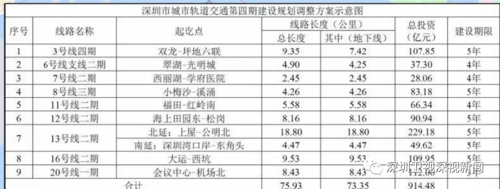 16號線二期工程自大運(yùn)站至西坑站,線路長度9.53公里,為地下線,采用A型車6輛編組;總投資109.95億元,建設(shè)工期5年。