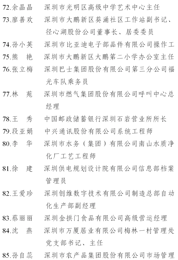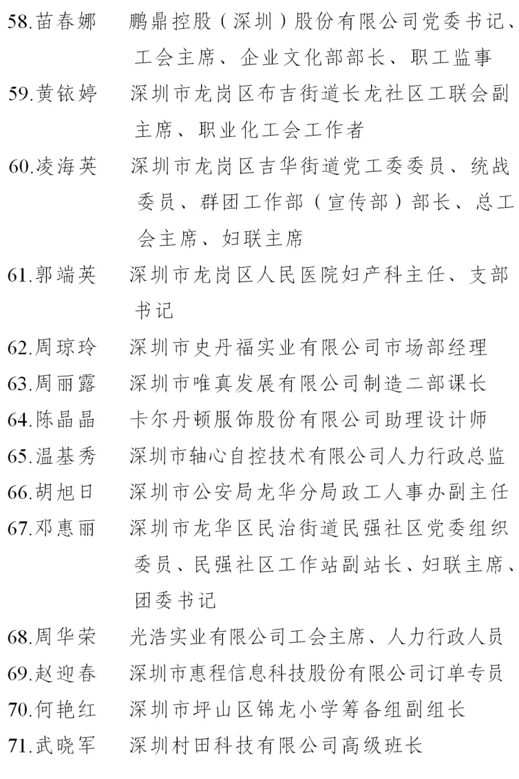 二、深圳市五一巾幗標(biāo)兵名單