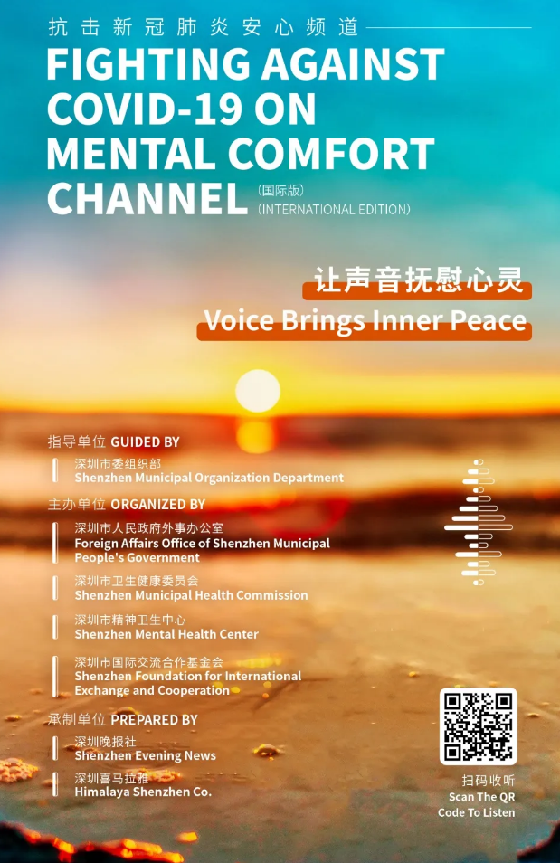 在疫情面前,每一份信念都意義重大,每一個(gè)希望都影響深遠(yuǎn)。4月11日,抗擊新冠肺炎安心頻道(國(guó)際版)在喜馬拉雅 APP正式上線。該欄目在深圳市委組織部的指導(dǎo)下,由深圳市外辦攜手深圳市衛(wèi)健委、深圳市精神衛(wèi)生中心、深圳市國(guó)際交流合作基金會(huì)聯(lián)合出品,由深圳晚報(bào)和深圳喜馬拉雅共同承制。據(jù)悉,抗擊新冠肺炎安心頻道(國(guó)際版)是深圳市外辦首次聯(lián)合多部門(mén)協(xié)作,共同出品的全英文音頻欄目,也是繼"抗擊新型肺炎安心手冊(cè)音頻版"推出以來(lái)的又一大創(chuàng)新。該欄目的推出體現(xiàn)了深圳對(duì)中外居民的人文關(guān)懷,也展現(xiàn)了深圳作為國(guó)際化城市的溫暖大愛(ài)。