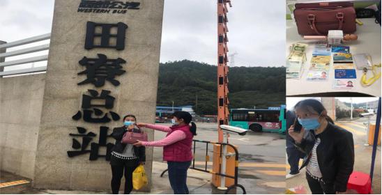 當(dāng)天下午,邱女士乘坐 M455線路公交車前往光明區(qū)文化館,途中她順手把包放在座位上,到站時(shí)下車匆忙居然忘了拿,等反應(yīng)過來,車早已開遠(yuǎn),車牌號(hào)也看不清了,這可把她急壞了。冷靜下來后,邱女士趕緊致電西部公汽客服求助??头藛T了解情況后,將其電話轉(zhuǎn)接到該公交車所在的田寮車隊(duì)。班車隊(duì)管理人員根據(jù)邱女士的描述,很快鎖定她乘坐的是由董健康師傅駕駛的牌號(hào)為粵 B40553D的車,便迅速讓 GPS監(jiān)控員關(guān)注車輛情況,聯(lián)絡(luò)司機(jī)董師傅留意車上是否有符合失主描述的手提包,確認(rèn)了包仍在座位上以后,及時(shí)反饋失主邱女士,安撫其焦慮情緒。