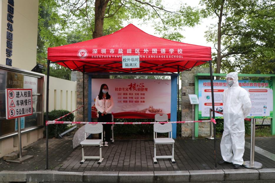 鹽田區(qū)外國(guó)語(yǔ)學(xué)校嚴(yán)格按照相關(guān)要求,制定了“一人一卡”師生健康監(jiān)測(cè)記錄表,對(duì)全體師生員工包括聘用人員開學(xué)前14天健康狀況和行動(dòng)軌跡進(jìn)行全面排查。此外制定了《鹽田區(qū)外國(guó)語(yǔ)學(xué)校防控復(fù)學(xué)工作方案》《鹽田區(qū)鹽國(guó)語(yǔ)學(xué)校疫情防控應(yīng)急處置方案》,并于3月30日至31日開展了防控培訓(xùn)和應(yīng)急演練,確保人人知流程、崗崗懂處理。