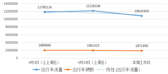 交警部門預(yù)計,今天周五晚高峰,出行車輛的次數(shù)會依然處于高位。經(jīng)對15時至21時全市出行車輛情況統(tǒng)計,4月3日(上上周五)全市出行車流量1178.51萬輛次,出行車輛198.97萬輛;4月10日(上周五)全市出行車流量1212.61萬輛次,出行車輛196.15萬輛。結(jié)合本周工作日全市出行車輛情況,深圳交警預(yù)計4月17日(本周五)全市出行車流量較工作日稍有增加,增加約9.34%,達1182.97萬輛次。