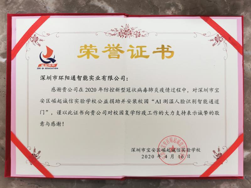 大陽(yáng)智通集團(tuán)助校復(fù)學(xué) 公益捐助防疫測(cè)溫人臉識(shí)別通道