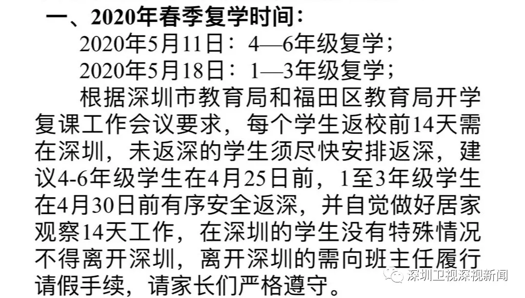 由此看來,深圳目前還未確定除初三、高三之外年級學(xué)生的開學(xué)時(shí)間。