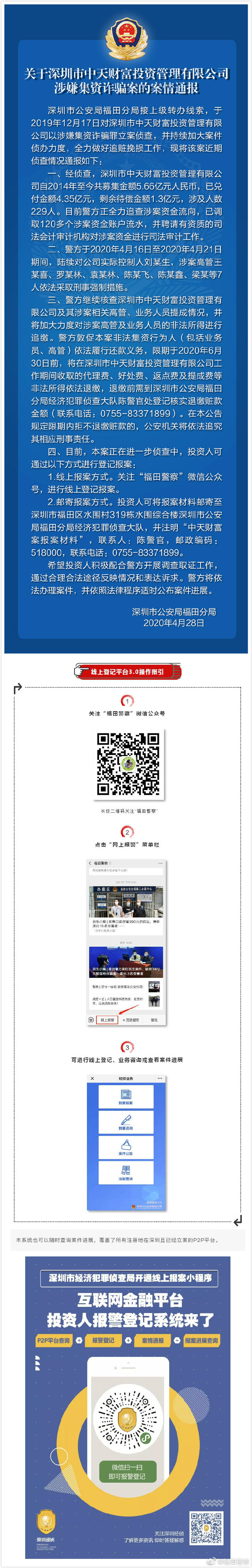 關(guān)于深圳市中天財(cái)富投資管理有限公司涉嫌集資詐騙案的案情通報(bào) ????