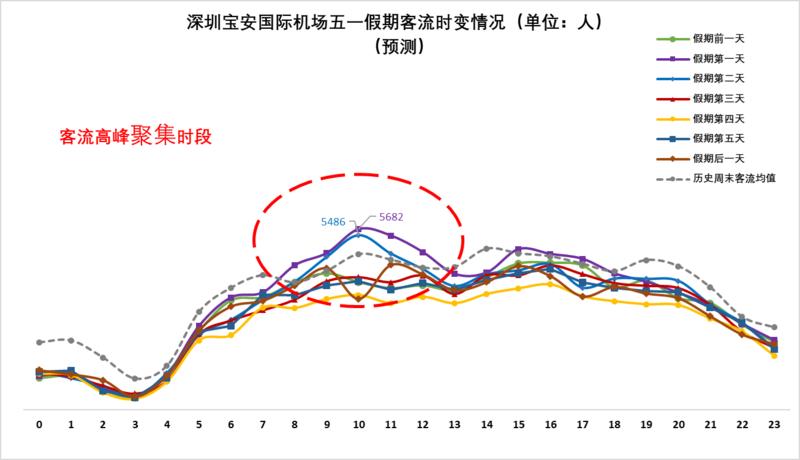 ▲預(yù)計(jì)深圳寶安機(jī)場5月1日(假期第一天)、5月2日(假期第二天)的上午時(shí)段較易出現(xiàn)當(dāng)日客流高峰。