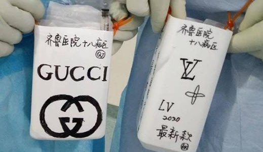 前段時間,一批新款獨家限量版名牌桶包亮相武漢大學人民醫(yī)院。因防護服沒有口袋,醫(yī)護人員們便突發(fā)奇想用塑料空瓶、事先畫好的裝飾圖、膠水和方便斜挎的繩子做出了桶包↓↓