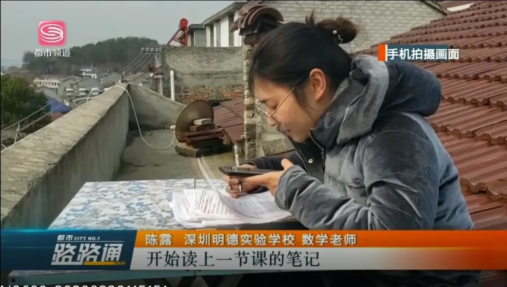 深圳中小學(xué)網(wǎng)課開課以來,廣大青年教師克服種種不利條件,變身教育主播,讓知識(shí)穿越屏幕直達(dá)學(xué)生心靈,深圳明德實(shí)驗(yàn)學(xué)校的陳露老師就是其中一位典型代表。她因疫情滯留于湖北農(nóng)村,由于信號(hào)差,一開始為了錄制微課,白天她就帶好口罩跑到雜草叢生的山頂找信號(hào),一塊木頭當(dāng)?shù)首?,坐下慢慢等上傳視頻,頂著寒風(fēng)一坐就是半天。線上教學(xué)正式開課后,由于設(shè)備和信號(hào)問題,陳老師只能采用QQ直播的方式給學(xué)生上課,為了保障語(yǔ)音效果,她把課堂搬到信號(hào)稍強(qiáng)的屋頂。上屋頂不是件容易的事,陳老師必須先爬一個(gè)陡峭的梯子,再匍匐穿過一個(gè)孔洞才能到達(dá)。一個(gè)天臺(tái)、一張折疊桌成了她的“三尺講臺(tái)”,一疊信紙成了她的“黑板”,一部手機(jī)成了她的“多媒體”。陳露老師每天坐在樓頂?shù)暮焙惋L(fēng)雪中,堅(jiān)持完成直播課,保證學(xué)生正常的線上學(xué)習(xí)。
