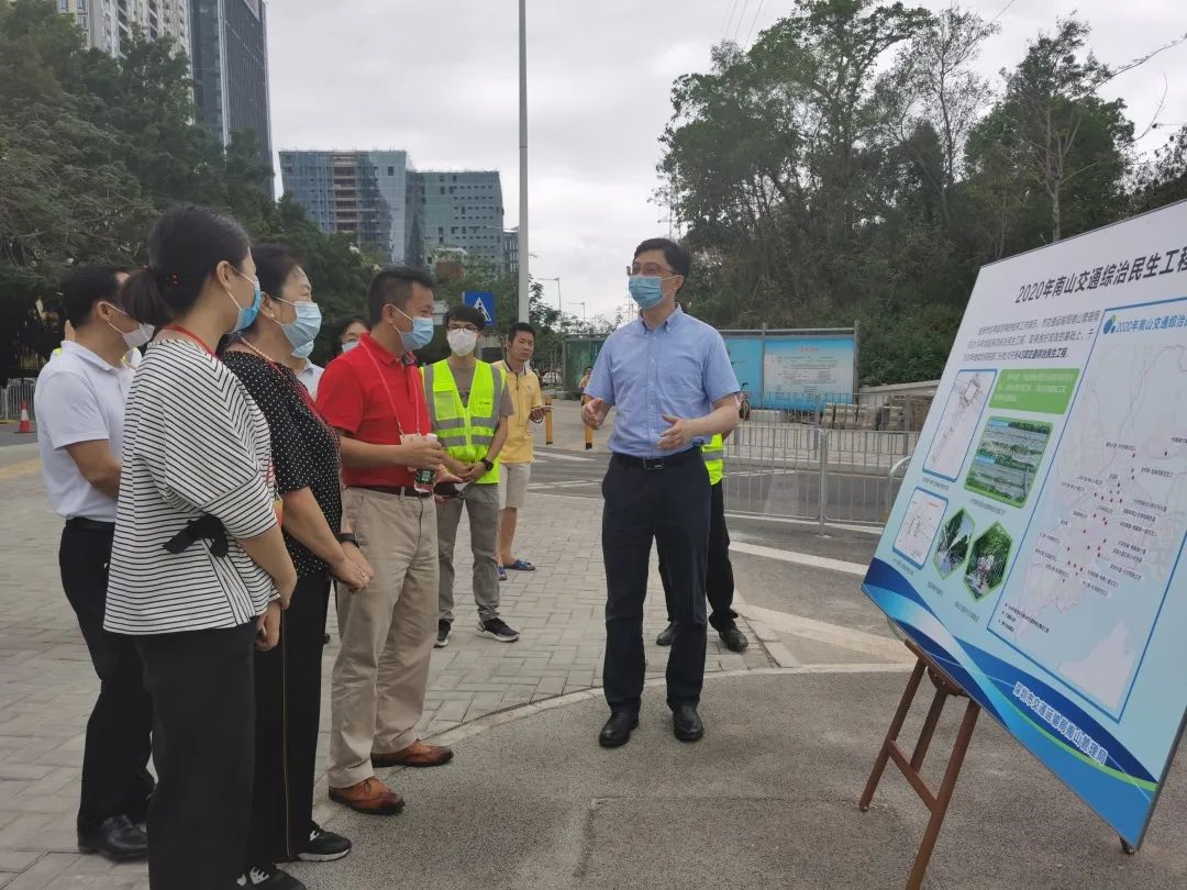 ▲體驗結(jié)束后,在調(diào)研現(xiàn)場,深圳市交通運(yùn)輸局南山管理局相關(guān)負(fù)責(zé)人向區(qū)人大代表們講解今年南山交通綜治民生工程。消息報記者肖佩攝