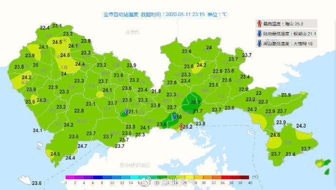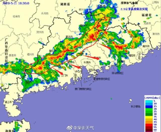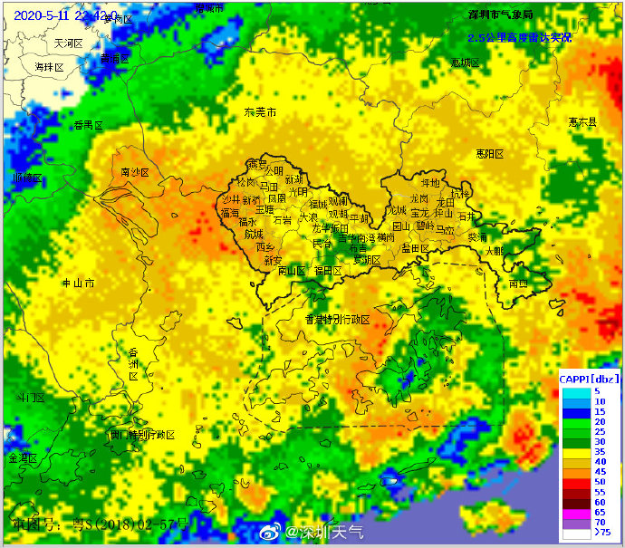 23時32分:【深圳市取消暴雨黃色和大風(fēng)黃色預(yù)警,雷電預(yù)警繼續(xù)生效】強降雨帶已經(jīng)移出我市,市氣象臺于2020年05月11日23時30分在全市取消暴雨黃色、大風(fēng)黃色預(yù)警。全市雷電預(yù)警仍在生效中,未來1-2小時仍有陣雨和零散雷暴,市民仍需注意遠(yuǎn)離河道和危險邊坡等。