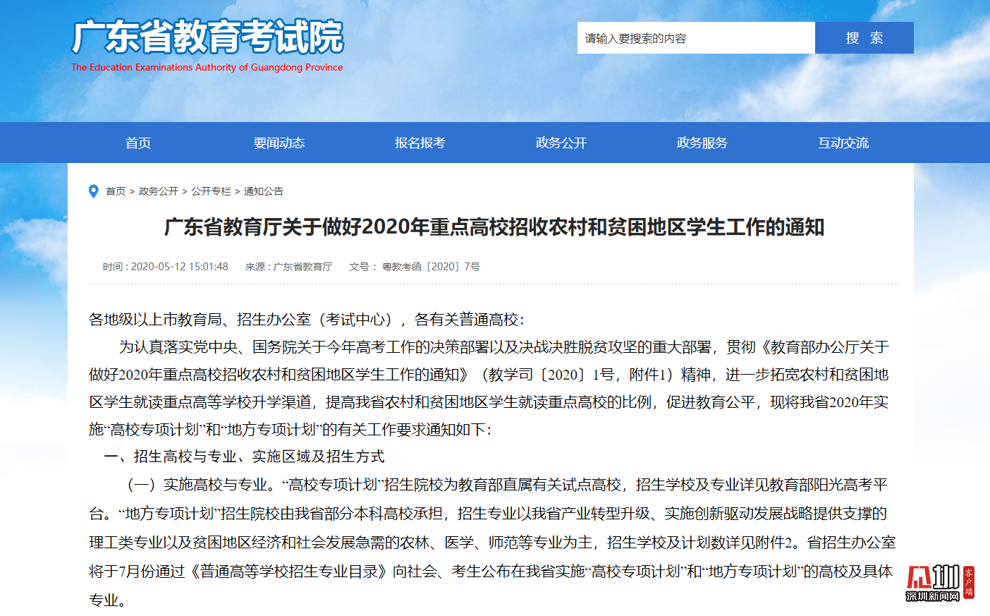 見圳客戶端·深圳新聞網(wǎng)2020年5月13日訊(見圳客戶端、深圳新聞網(wǎng)記者 吳英敏 金洪竹)5月13日,記者從廣東省教育廳獲悉,為進(jìn)一步拓寬農(nóng)村和貧困地區(qū)學(xué)生就讀重點高等學(xué)校升學(xué)渠道,提高廣東省農(nóng)村和貧困地區(qū)學(xué)生就讀重點高校的比例,促進(jìn)教育公平,2020年廣東省將實施“高校專項計劃”和“地方專項計劃”,做好重點高校招收農(nóng)村和貧困地區(qū)學(xué)生工作。