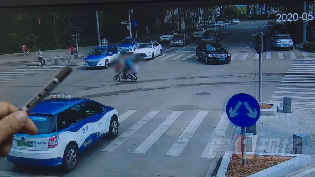 5月12日下午,在南山外國語學(xué)??圃沸W(xué)與南山外國語學(xué)校中間路段,一位老人騎電單車,載著一名小學(xué)女生,沿著高新南環(huán)路由西往東方向行駛。