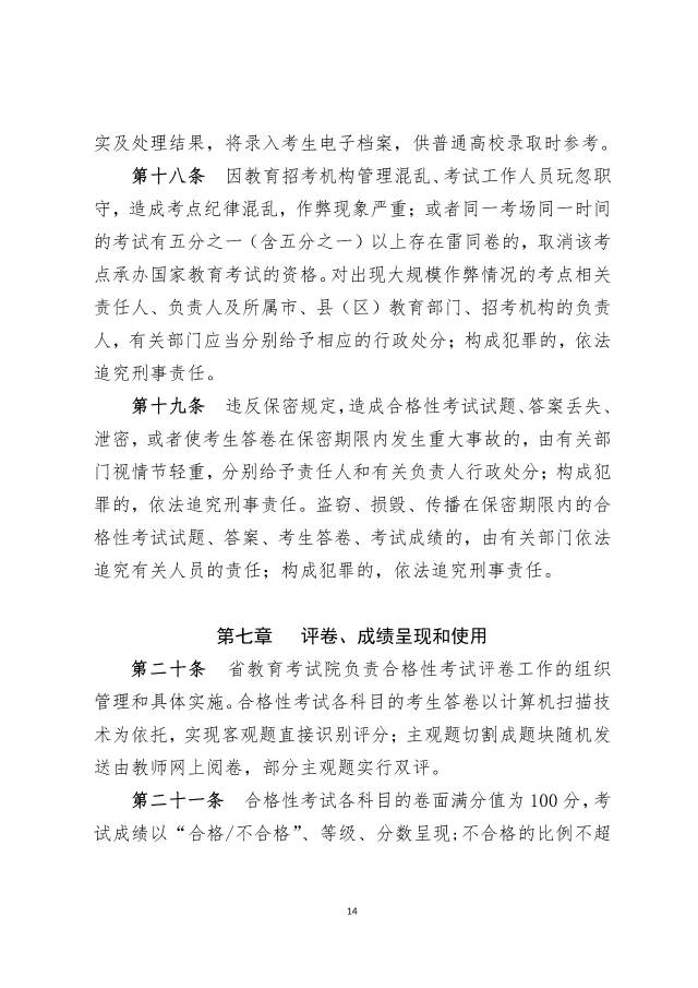 其中,合格性考試覆蓋所有學(xué)習(xí)科目,語(yǔ)文、數(shù)學(xué)、英語(yǔ)三門科目每年考1次,安排在1月開考;思想政治、歷史、地理、物理、化學(xué)、生物學(xué)六門科目每年考2次,安排在1月和6月開考。合格考成績(jī)呈現(xiàn)方式有三種:合格/不合格、等級(jí)、分?jǐn)?shù)??荚嚦煽?jī)一考兩用,既作為學(xué)生畢業(yè)的依據(jù),也作為春季高考招生的依據(jù)之一。