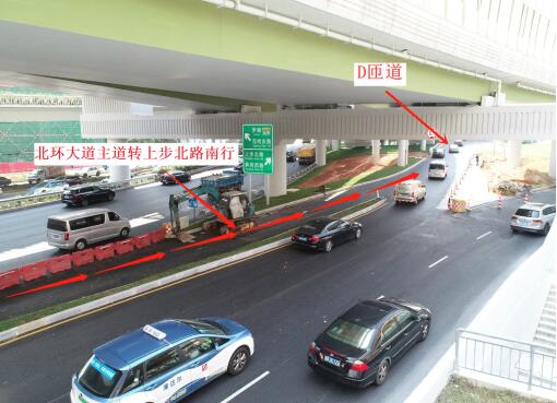 封閉北環(huán)大道主道轉(zhuǎn)上步北路南行路口,僅作應(yīng)急使用,以減少對北環(huán)主路交通影響。