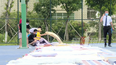 籃球場(chǎng)上已經(jīng)鋪上了長(zhǎng)長(zhǎng)的墊子