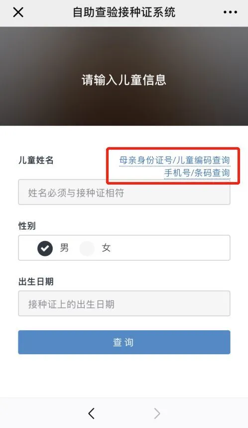 錄入兒童基本信息,可選擇手機(jī)號或條碼查詢: