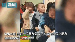 24日,貴陽一幼兒園小朋友正排隊等著扎手指采血。