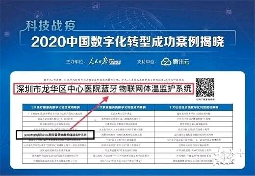 日前,《人民日?qǐng)?bào)》公布“科技戰(zhàn)疫——2020中國(guó)數(shù)字化轉(zhuǎn)型成功案例”,龍華區(qū)中心醫(yī)院的藍(lán)牙物聯(lián)網(wǎng)體溫監(jiān)護(hù)系統(tǒng)入榜,躋身于醫(yī)療健康類數(shù)字化轉(zhuǎn)型成功案例。